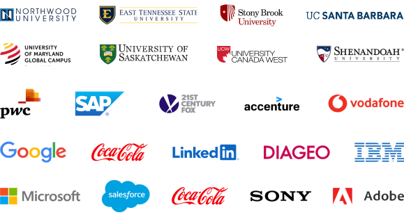 Some of the world's leading business and universities partner with us to upskill their teams and elevate their student employability.